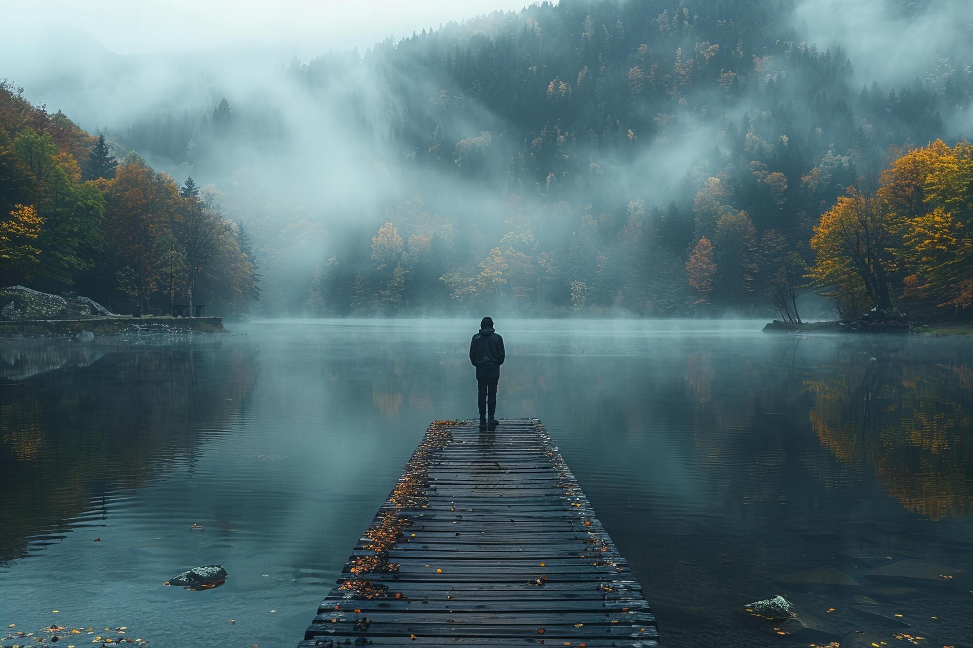 Serene moment of a young girl finding peace and tranquility while enjoying the sunset over a calm lake