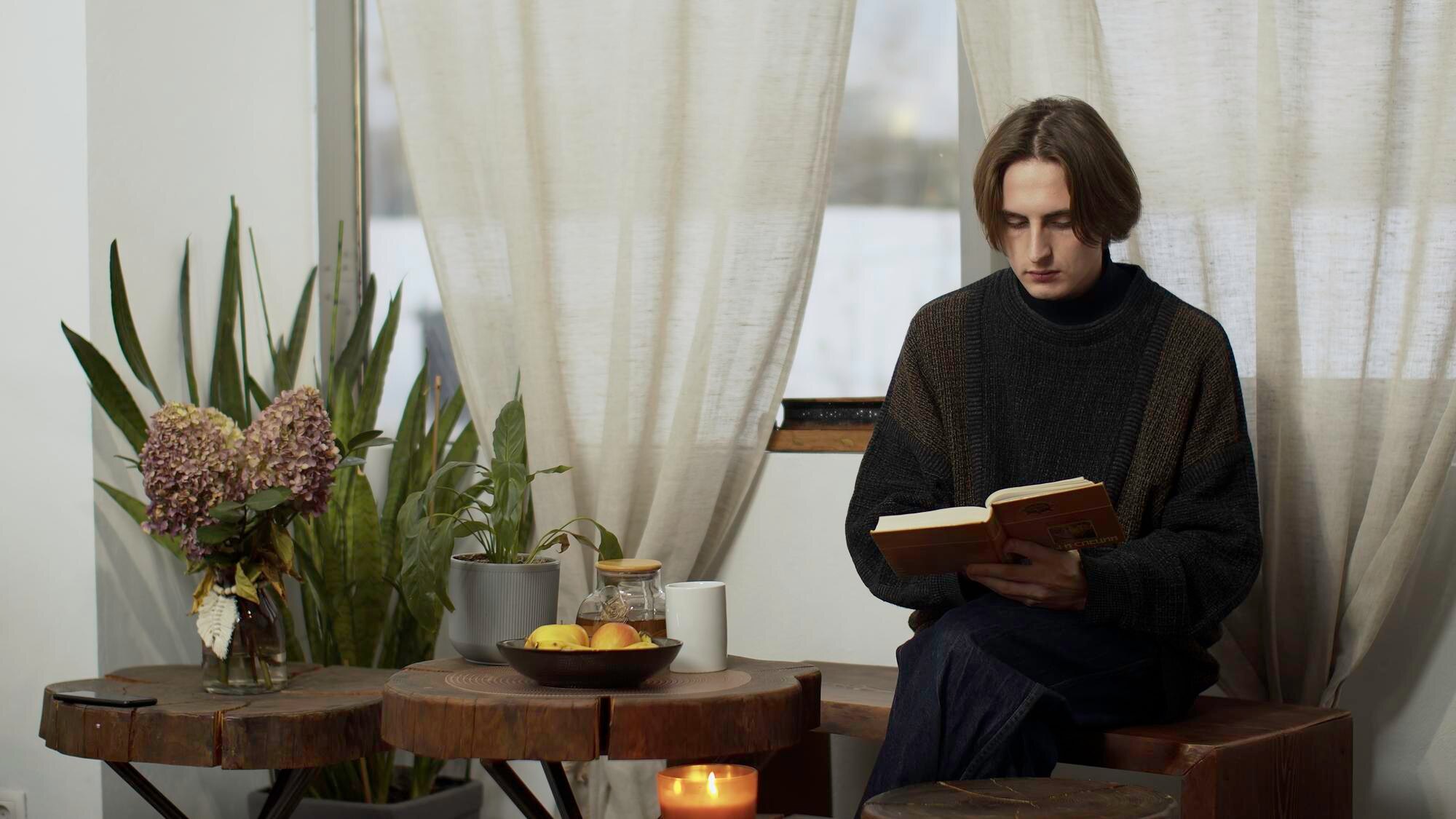 A cozy mental health break with an open journal, pen and coffee cup.Young Woman taking a mental health break to write in her journal stares out the window with coffee in hand