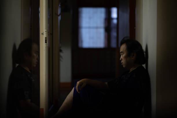 Asian man sitting alone with a depressed and lonely attitude