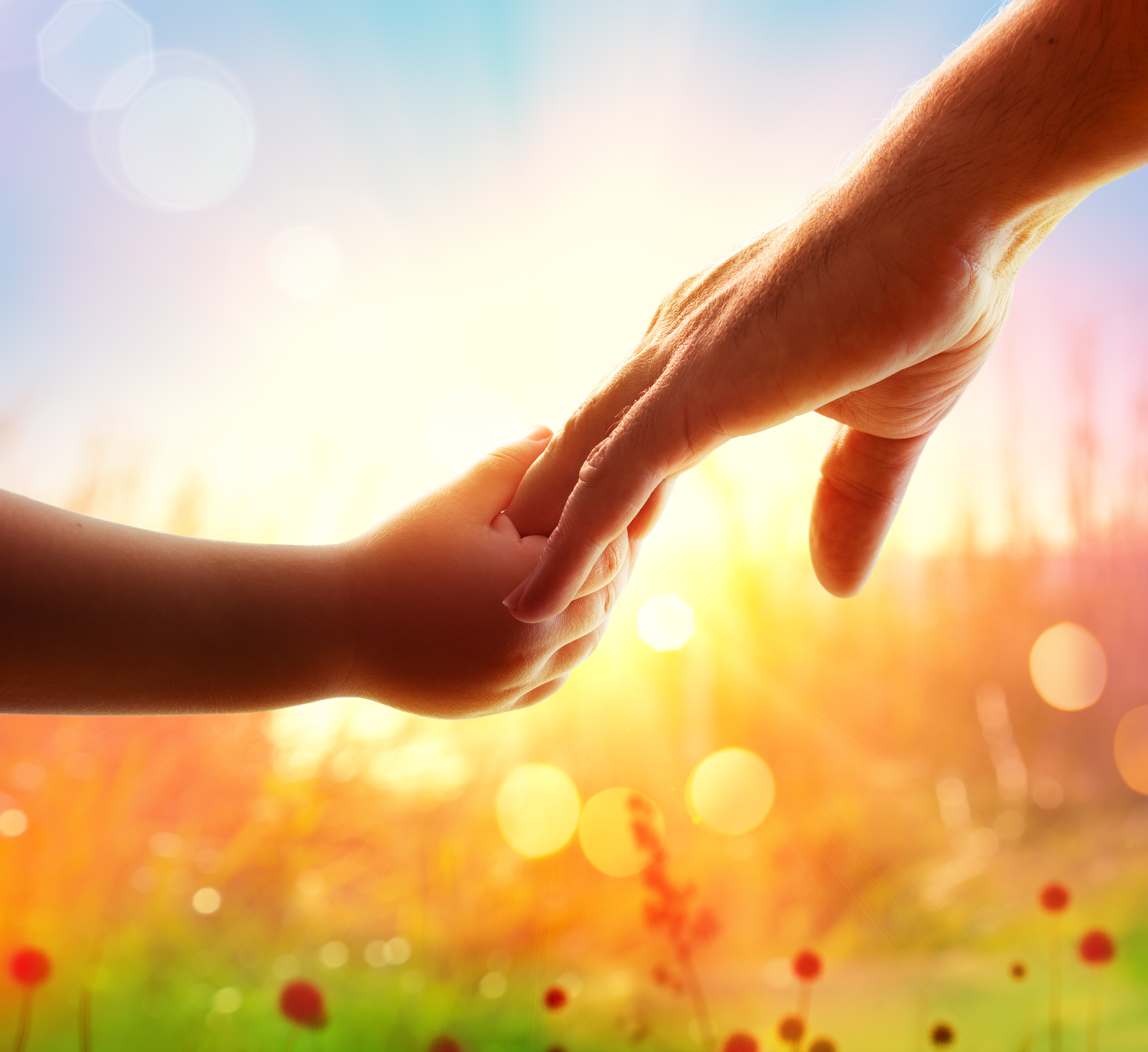 Child's hand clutching her father's hand