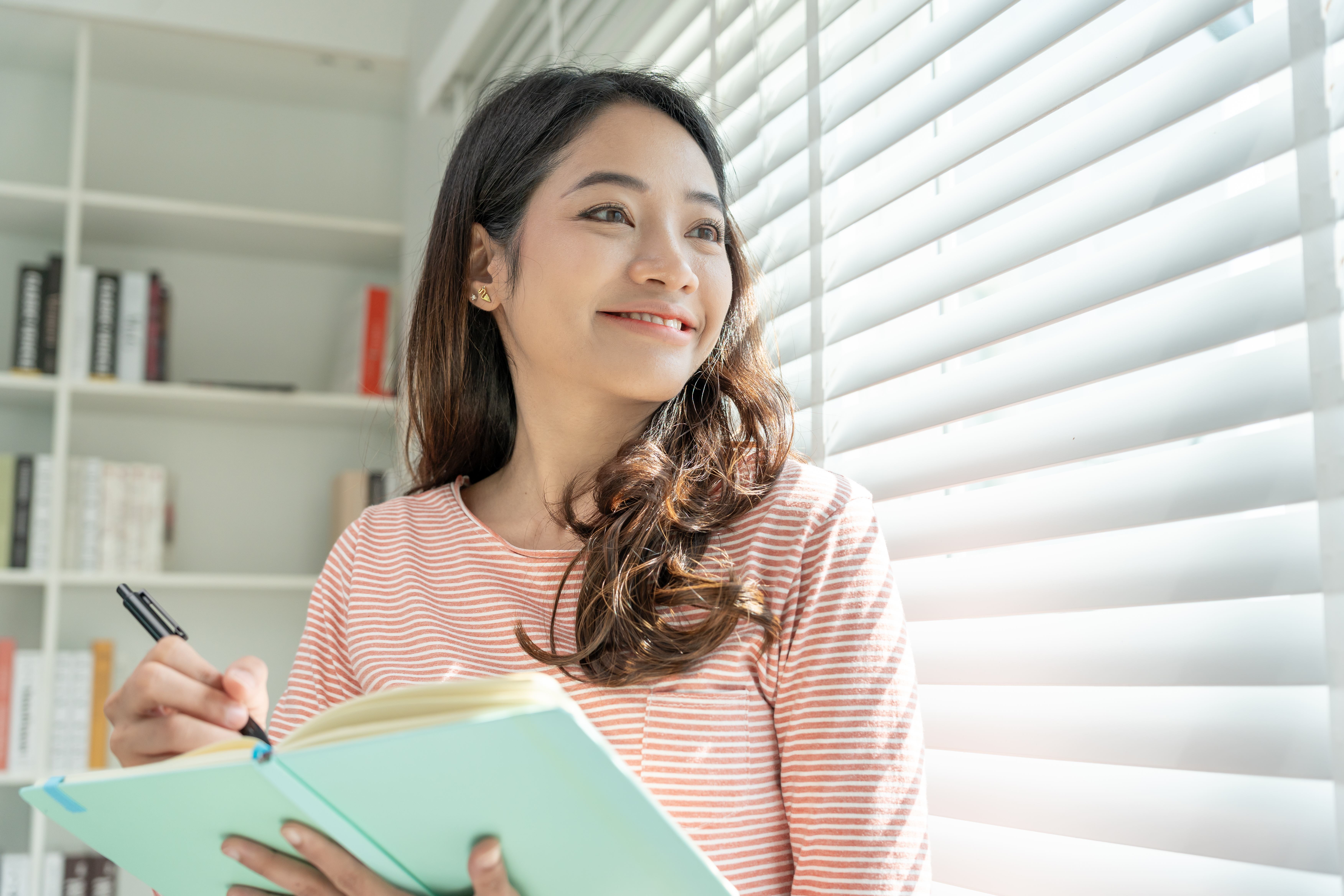 inspiration, writer, writing ,creative ,recreation for imagine, Beautiful Asia attractive young woman writing ideas on notebook, to do list, good thinking work, journalist, Stylish, Dream image, relax